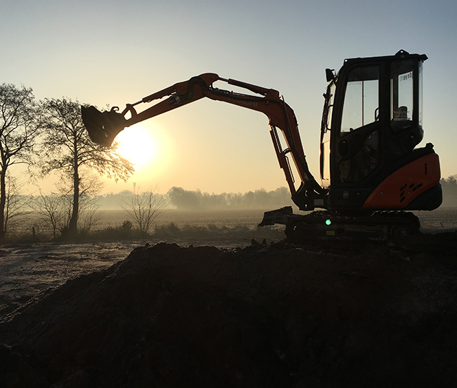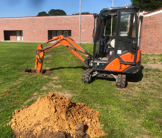 Somit sind wir in der Lage, angefangen von Gräben für z. B. kleine Fundamente über Kanalgräben bis hin zum Baugrubenaushub eine Vielzahl von kleineren Erd- und Tiefbauarbeiten zu erledigen.